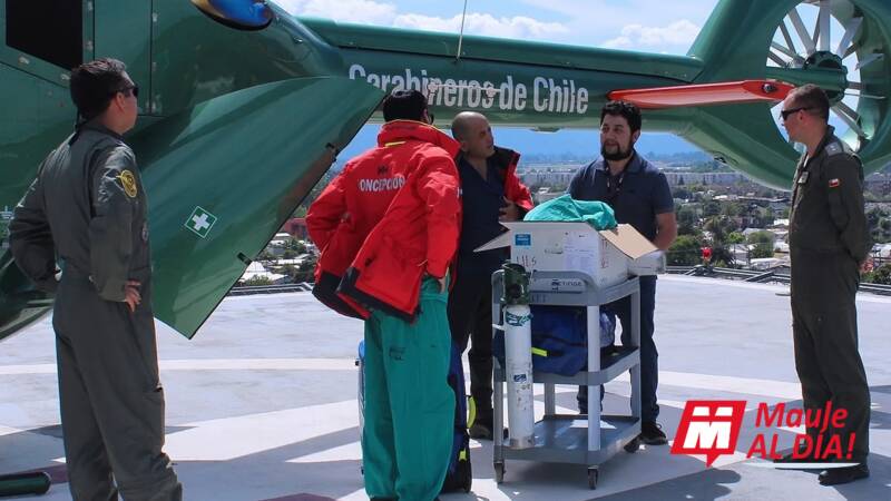 El equipo clínico viajó desde Concepción a Curicó por vía aérea, a fin de reducir los tiempos de respuesta, mientras que el traslado posterior del paciente se realizó por tierra, dadas las condiciones de estabilidad requeridas por el procedimiento.