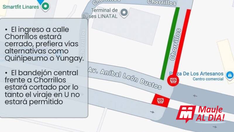 A partir del Lunes 24 de Noviembre y por un periodo estimado de una semana, se ejecutarán modificaciones viales en el sector de Avenida León Bustos con calle Chorrillos, debido a obras desarrolladas por las empresas Jumbo, McDonald’s y Aramco.